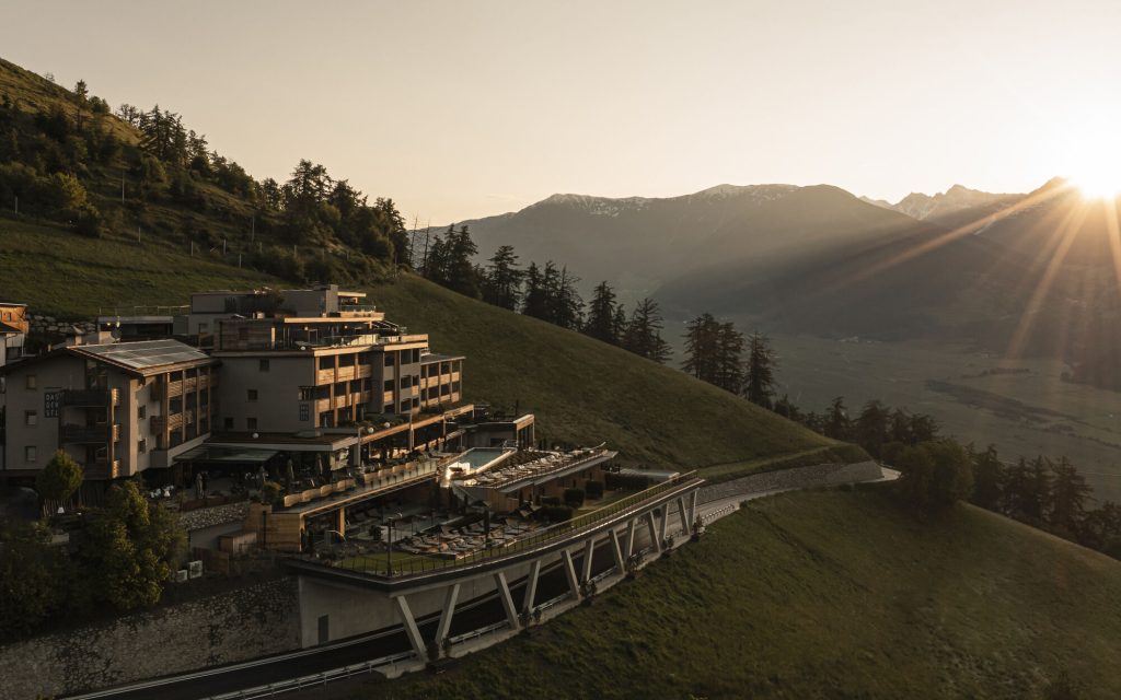 À 1500 mètres d’altitude, Das Gerstl joue la carte de l’intime : luxe est discret, fait de bois brut, de vue imprenable sur la vallée du Venosta et de produits locaux soigneusement sourcés. L’hôtel revendique un mode de vie « 100 % South Tyrol » : on mange, on boit et on respire local et c’est délicieux. La cerise sur le gâteau ? La piscine à débordement qui semble se jeter dans les montagnes embrasées par l’automne. Une adresse parfaite pour décrocher, vraiment, et aborder la fin de l’année totalement ressourcé.